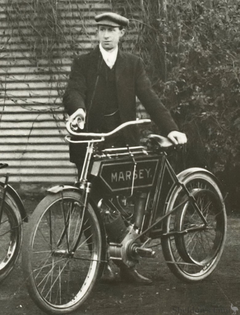 George Marsey Jackson (b. 18 May 1879 d. 22 Nov 1964) built motorcyles between 1907 and 1911 powered by Minerva and JAP engines. He also used the Marsey brand, possibly somewhat earlier.[1] The JAP, an OHV V-twin, was likely built for him by John King & Sons. Jackson raced both cars and motorcycles.