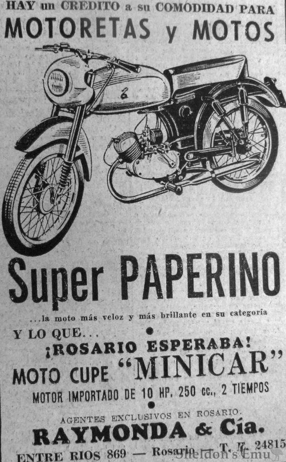 Established in 1957, the firm built motorcycles under licence from Gilera Italy. A new factory was built in 1962, and in 1963 employed 600 staff. They had a test track, and a foundry in Spegazzini where much of the casting was done.
