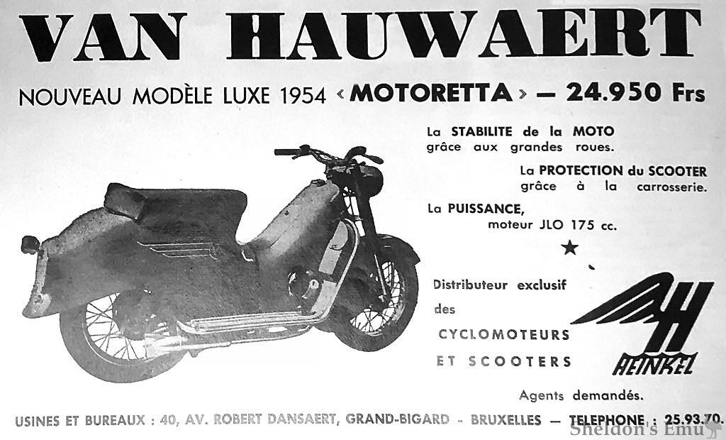 In 1954 or 55 Van Hauwaert distributed Sterva 125/175cc scooters under the name of Motoretta. The Italian firm MDS produced a Motoretta model of 65cc at the same time.