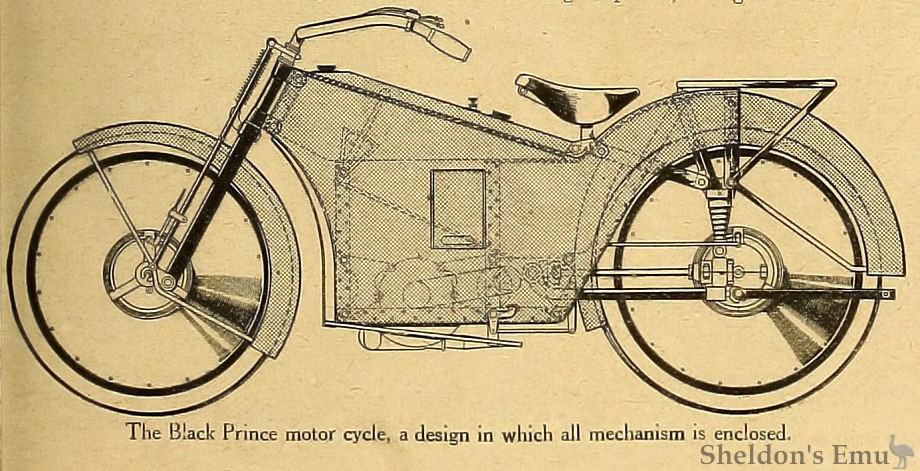 The Black Prince motor cycle, a design in which all mechanism is enclosed.