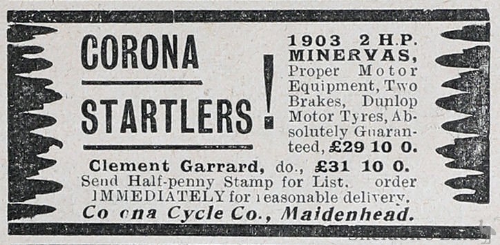 This was a small company that had originally dealt in cycles. They, like many other firms of the era, entered the market by adding an engine to a heavy-duty bicycle. Engines used would have been Belgian Minerva or French Clément, as well as British copies as they became available.