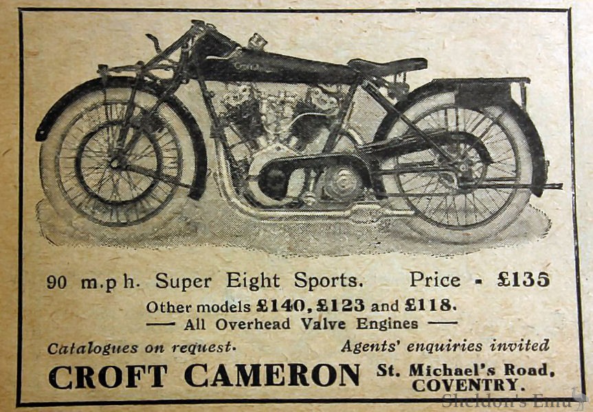Sometimes known as Croft, they were large capacity motorcycles produced from 1923 to 1926