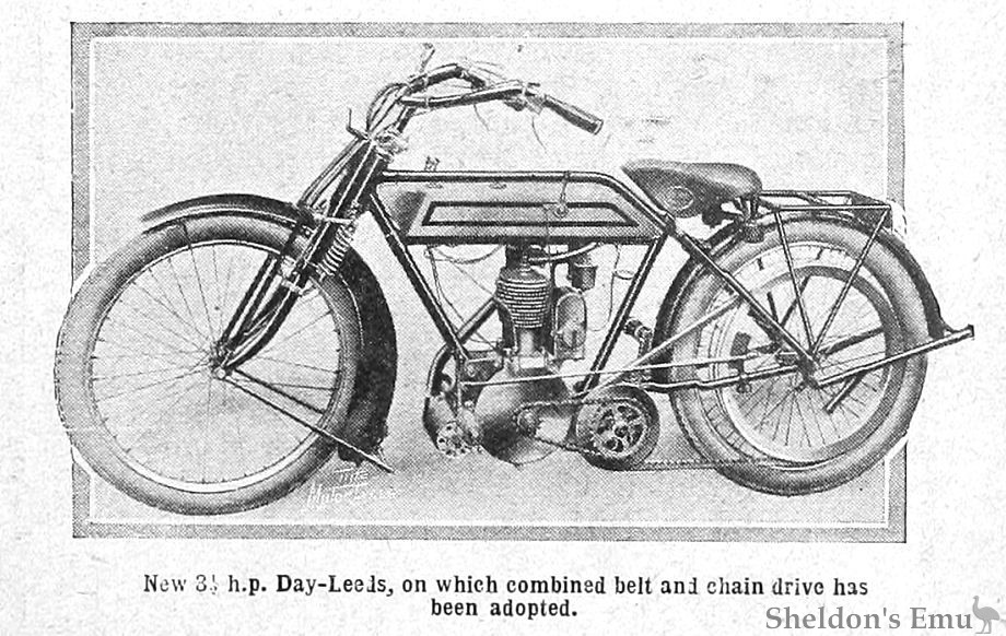 The firm marketed motorcycles under the brands Day-Leeds and Eclipse. These were produced from around 1912 until the beginning of the Great War and were developed by William Henry Day, son of Job Day. The firm was well established and built a variety of machinery for food processing and packaging. Their packaging machines were later exported internationally.