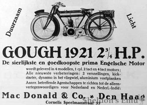 Mac Donald & Co. of Den Haag, Netherlands advertised Gough motorcycles that year.
