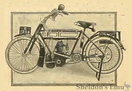 This make was only listed for one year and was fitted with a 3½ hp JAP single-cylinder engine with a two-speed countershaft gearbox, chain transmission, leading link forks and an ASL air spring for the saddle. A larger engine was available for sidecar work.