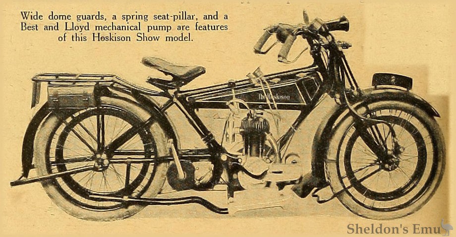 Initially named Hoskison Manufacturing Co of Digbeth, Birmingham, before changing to Hoskison Motors of Lozell's Road, Birmingham, the company produced motorcycles from 1919 to 1922.