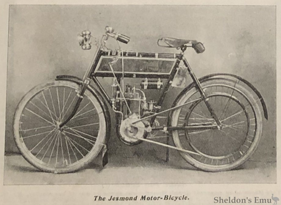 We alluded briefly in our last issue to the features of the Jesmond motor bicycle, made by the Jesmond Cycle Co., Newcastle-on-Tyne, and we are now able to give fuller particulars and illustration of the machine.