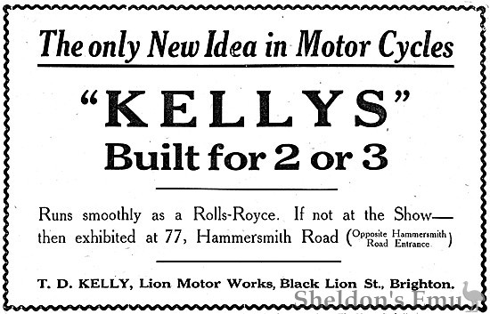 Kelly was a motorcycle produced in 1921 by Kelly Patent Cycles of Black Lion Street, Brighton, Sussex.