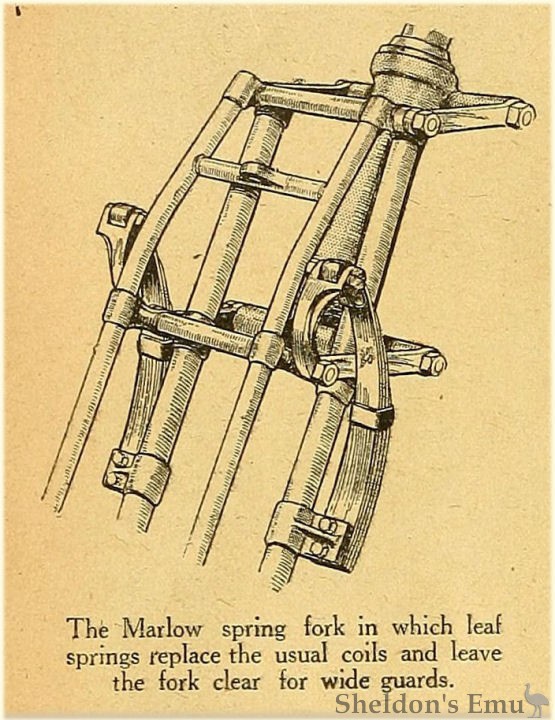 The Marlow spring fork in which leaf springs replace the usual coils and leave the fork clear for wide guards.