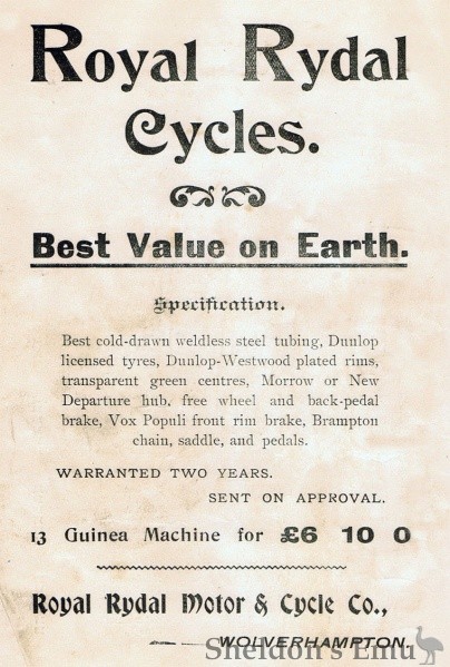 Royal Rydal Motor and Cycle Co of Wolverhampton