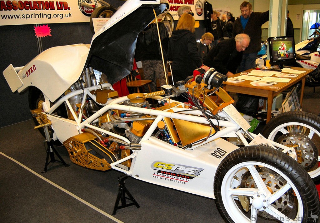 The Syko was originally a motorcycle sprinter with a 3.5 litre Rover V8 engine. In 2005 it gained a 5 litre V8, and in 2006 it was converted to a trike.