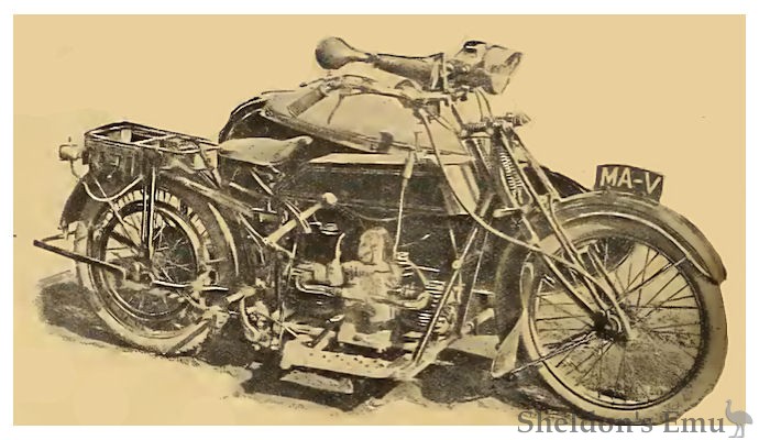The Ayres-Layland flat twin outfit, fitted with duplex spring frame.
