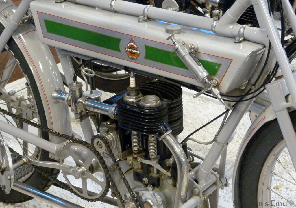 N.B. Graham Clayton writes: "Damien Kimberley in 'Coventry's Motorcycle Heritage;, p.124 gives the production span of the White Heather as c.1915-1925."