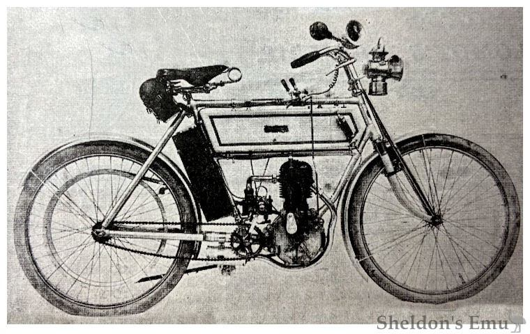 1908 Another model appeared as a lightweight with a 2½ hp V-twin engine mounted low down in a Chater-Lea frame.