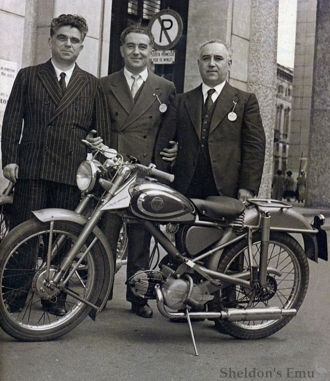 In the following years it is built by ISSI (Scientific Research Institute of Milan Industrial). 1952 saw two new versions added to the catalogue, the Turismo and Sport, both with 125cc engines. In 1956 they released a 49cc moped version with a pressed metal frame, and a lightweight motorcycle of 98cc with the same frame.