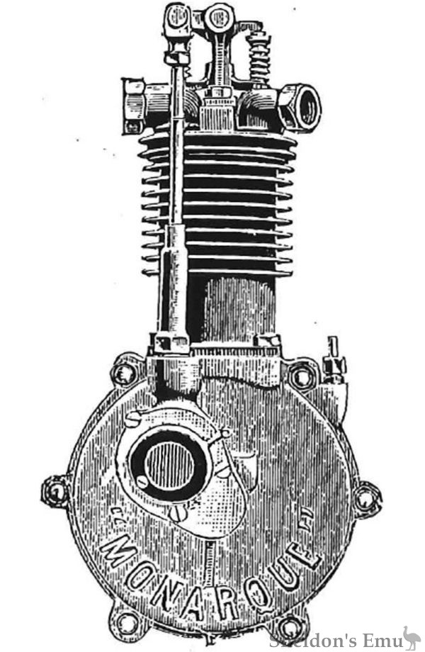 Monarque has emulated Buchet with this elegant machine on offer at a very competitive price. Under the name of L'Elégante, this 250cc (70x70mm) engine is also sold by Ets J.B. Mercier, 6, rue St-Ferdinand, Paris.
