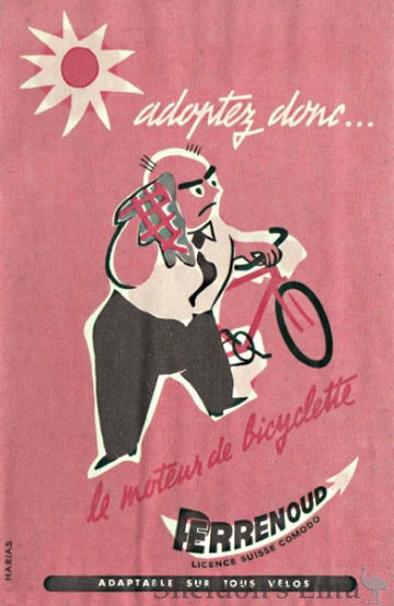 Built 48cc single speed horizontal two-stroke bicycle attachment engines 1953-54.
