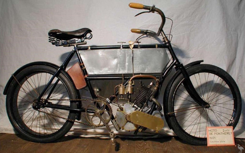 Motorcycle built in 1901~1905 by Ernest de Pontherey, Faubourg Montmartre, 57, Paris