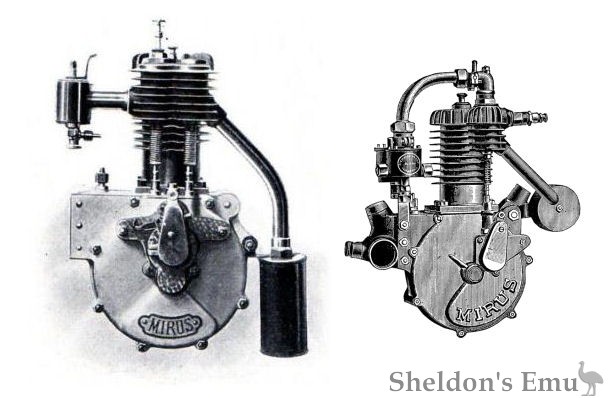 Mirus bicycle auxiliary engines mounted on the front wheel were built from 1902, and conventional engines were supplied to Andru in 1904, Pannetton in 1906, and to Aiglon. Amstoutz engines were fitted to the early Motobecane. The Etoile used a rebadged Mirus engine.