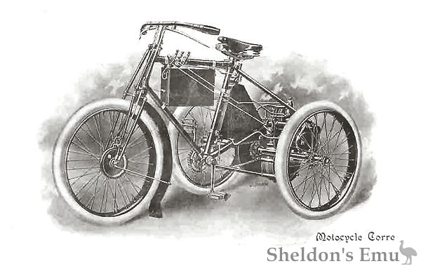 Corre & Cie was formed by Jean Marie Corre in 1894. Built tricycles with De Dion and also La Licorne engines. From 1902 built automobiles. The firm became Corre La Licorne around 1907 when M. Corre left the firm, which was also well known for their bicycles.