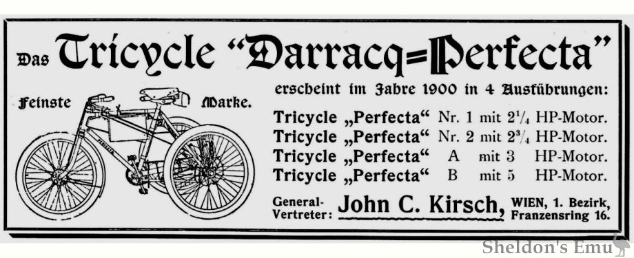 Alexandre Darracq built the 5 cylinder Millet motorcycles and tricycles from 1894 to 1895, and the Perfecta tricycles with Soncin or Aster engines.