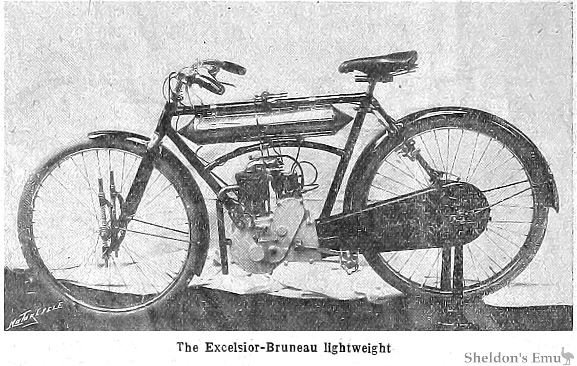 In 1907 they presented an Excelsior-Bruneau, built under licence to Rochet-Bruneau. It was all but identical to those of Rochet, Georges Richard, Roland, Regina and others.