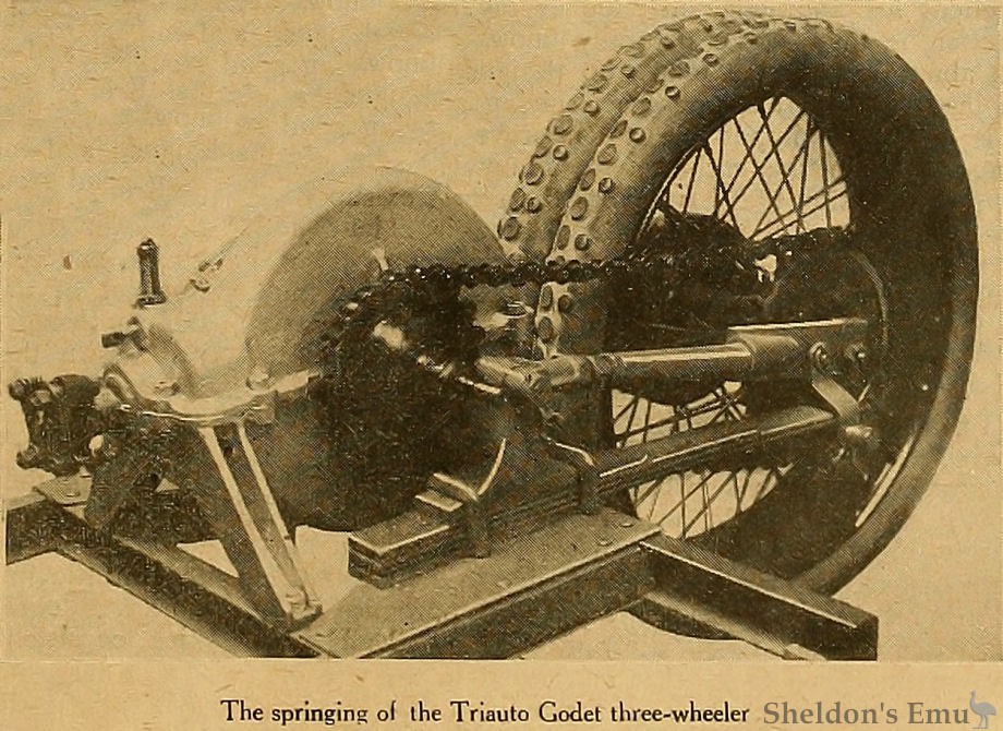M. Godet of Paris built the Triauto 8/10 CV in 1919 using an air-cooled Anzani twin which powered the rear wheel via a three-speed transmision and chain final drive.