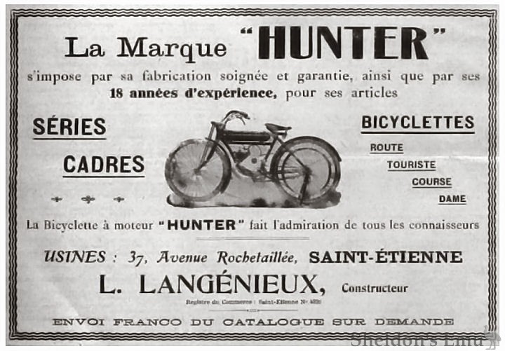 The Hunter marque reappeared in 1951 in Neufchateau in the Vosges, manufactured by a Verne F.