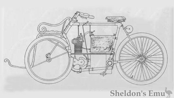 The first machines were motorcycles which could be converted to tricycles, and then in 1900 he developed a machine with a 198cc Renouard engine. An example of this was included in the auction of the Guélon Collection
