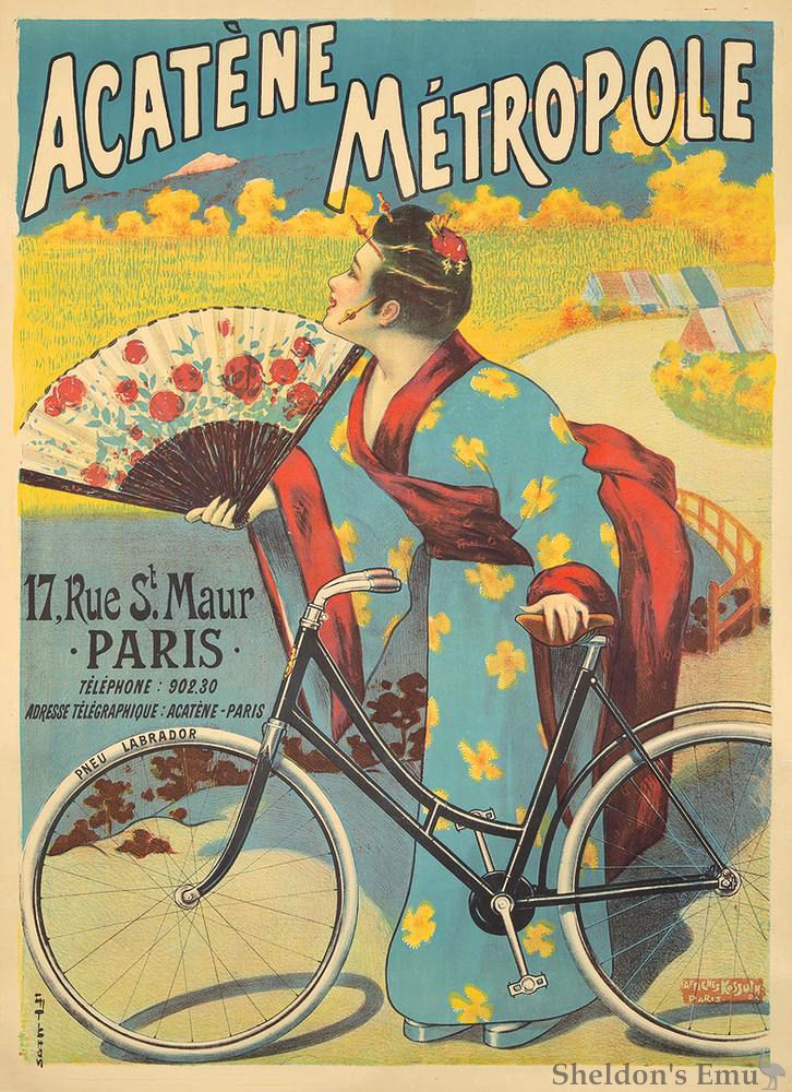 The Siemm company presented their first bicycles at the Paris Salon in 1893 which were advertised as Métropole Acatene because of the lack of drive chain (chaîne d'entraînement).