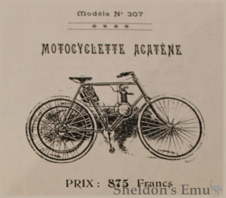 In 1899 built tricycles with De Dion-Bouton engines which were also marketed as Acatene, and in 1902 advertised a cardan motorcycle built by Chapelle.