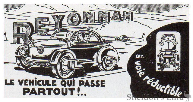 Manufactured by Robert Hannoyer of Paris from 1951 to 1954 using 175cc AMC four-stroke engines, these microcars were built in a variety of forms. With the appearance of a three-wheeler, the minicars actually had two wheels close together at the rear, and the front wheels could be brought closer together by raising the machine's nose, allowing entry to narrow laneways.