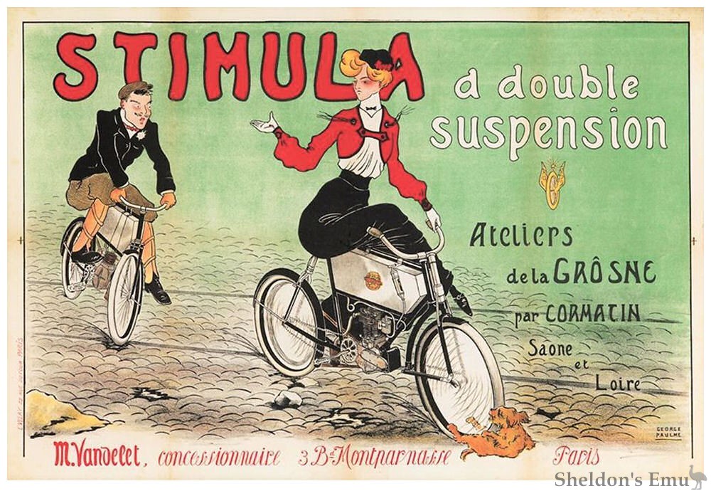 In 1904 Lucien Octave Vandelet began selling the Stimula marque at his Paris store which had been selling Werner motorcycles and De-Dion vehicles since about 1900. He advertised Stimula-Vandelet motorcyclettes and Stimula Tri-cars, the latter possibly built by Vandelet in Paris using the Chapelle brothers motorcycles as the base.