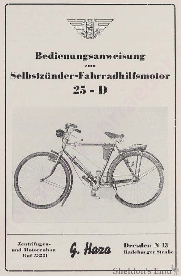 Manufactured by Motorradhaus Hans Schütze, Dresden A-16, Hammerstraße 6.