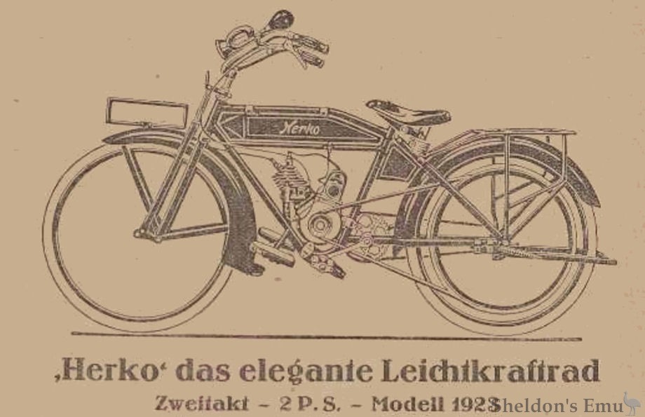 His first Hako machines appeared in 1923 with 1.5 h.p. DKW engines, single speed or optional 2-speed F&S gearbox. This was joined in 1924 by models powered by 3hp DKW and 350cc sidevalve JAP engines. It is thought that only 10 machines were built under the Hako brand.