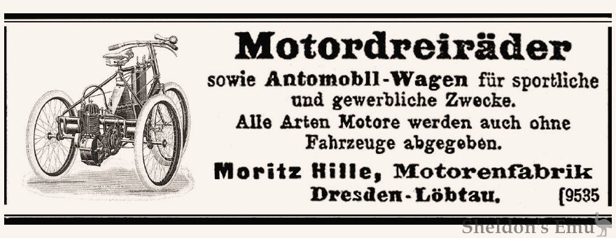 Manufactured by Moritz Hille in Dresden. Company founded 1884