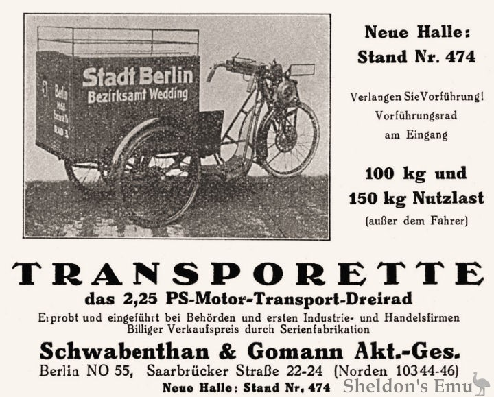 Manufactured by Maschinenfabrik Fr. (anz) Schwabenthan & Gomann A.-G., Berlin, 1924 to 1926.