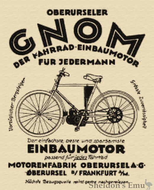 The Gnom marque was derived from the engine built by Oberursel of that name. It was built under licence by a French company, Société Des Moteurs Gnome, which later became Gnome et Rhône.