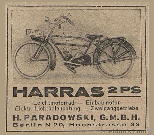 Manufactured in Berlin by Harras Motoren AG, 1922-1925 ¹