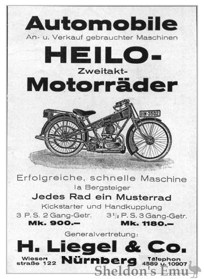 Manufactured by Motorradfabrik Heilbrunn & Co., Bauerngasse 21, Nuremberg, 1923 - 1925
