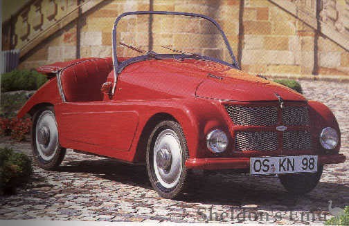 Paul Kleinschnittger began working on microcars in 1939 in East Prussia. Postwar, he moved to Arnsberg in Westfalia and with help from local authorities set up a small manufacturing plant in 1951 where, over the following 7 years, he produced some 3100 vehicles. He was very active in competition events, entering trials and rallies such as the Madrid-Lisbon race of 1954 where he placed second in handicap, generally competing against much more powerful cars.