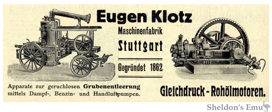 Manufactured by Maschinenfabrik Eugen Klotz in Stuttgart, Bahnhofstrasse 129, 1923-1926. Director G. Roau