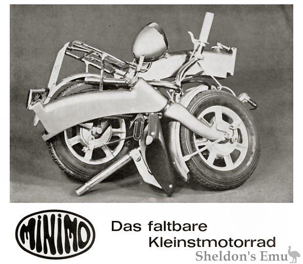 Willi Poppe was the owner of a foundry in Kiel. Keen on watersports, he developed the minibike for boat owners to give them transportation when in port. Powered by JLO engines of 34 and 47cc, the folding minibike proved quite popular, and was even used, it is claimed, by glider pilots so that they could ride to the nearest phonebox after outlanding. A Trump supporter would probably believe this.