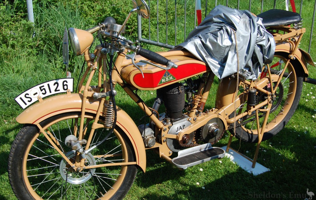 Some 700 N.S.H. machines were hand-built to customer order using tubular steel frames and, from 1928, saddle tanks. Quite a number of these have survived including several owned by the Nöding family - examples include motorcycles powered by a 600cc MAG V-twin and a Sturmey-Archer 350cc single.