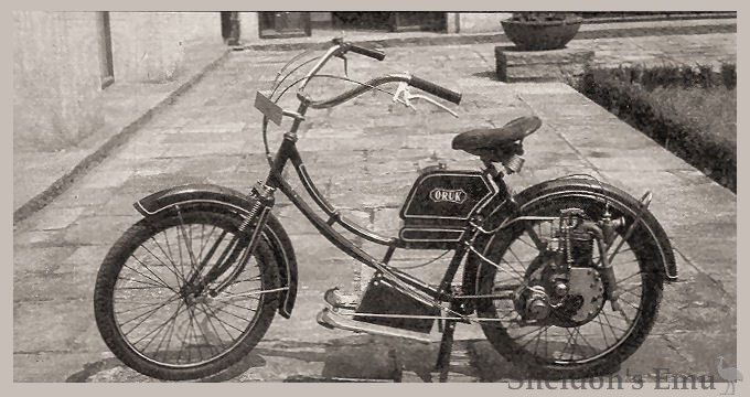 Described as "ohne Riemen und Kette" (without belt and chain), the scooter-like machine had a 192cc two-stroke engine mounted adjacent to the rear wheel. Possibly also known as OKUR.