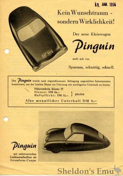 The last survivor? The body shop that built the few original Pinguin bodies, Johannes Rudy (Delmenhorst), also made this toy car. Do you have any information or literature about this pedal car? I heard there's an obsolete book about german body shops that covers the Pinguin cars AND this toy. Are there any real Pinguin bubblecar left?