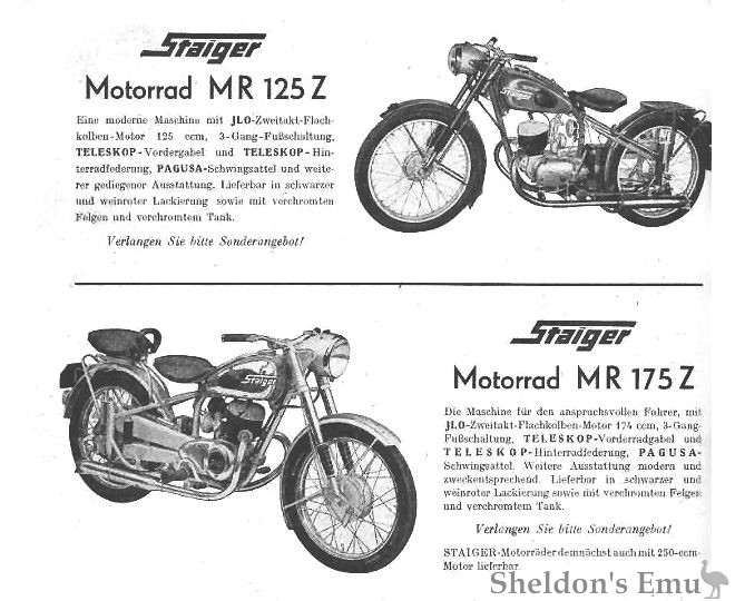 Schürhoff motorcycles were rebadged by Staiger as the MR 125 and MR 175 in the early 1950s.