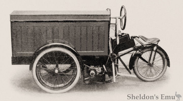 The dreirad was marketed by Bruno v. Festenberg-Pakisch, who also distributed a wide range of motorcycle parts and accessories.