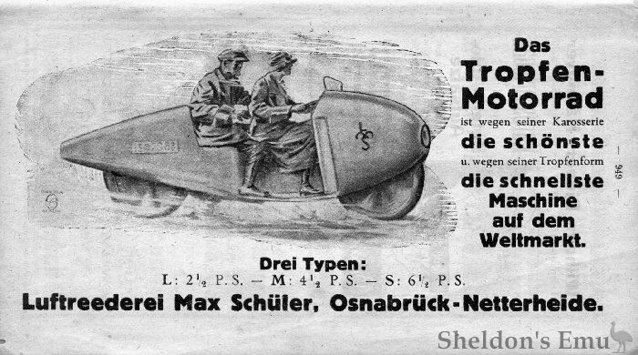 In 1923 the firm used its expertise as a builder of airships to construct motorcycles. These had the appearance of a Zeppelin and were named the Tropfen-Motorrad. Few were made.