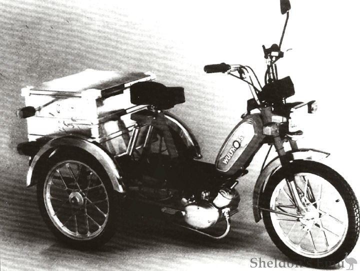 The firm built bicycles and a Mofa-Dreirad (moped tricycle) powered by a 47cc engine from Fichtel & Sachs. The luggage box was positioned quite high with the C of G well behind the rear axle, so heavy loads may have made for interesting handling characteristics. The wheels were cast alloy with narrow spokes.